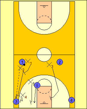 want X4 to point the ball with X5 fronting the low post. X2 will look to
