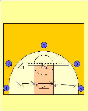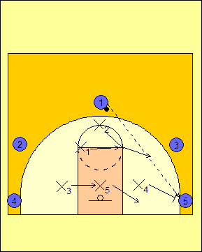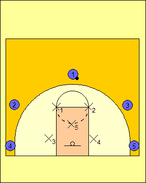 is passed. In the illustration, X5 will set up in front of the basket, X1