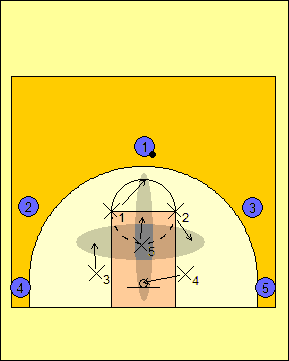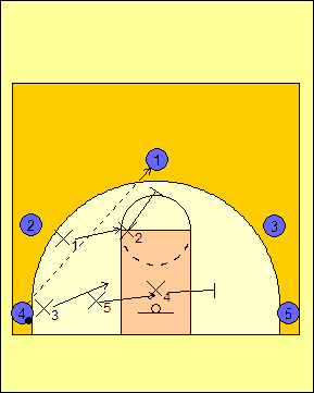 If the ball is entered into the high post area, we will have X5 cover the ball