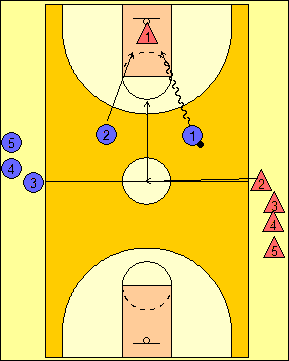 decides to retreat, we want the ballhandler to go in for the lay-up (Diagram 1).