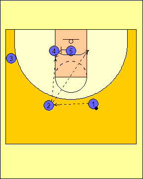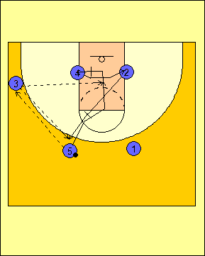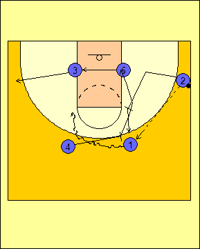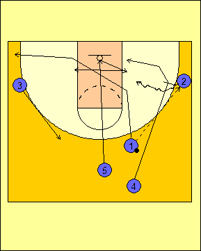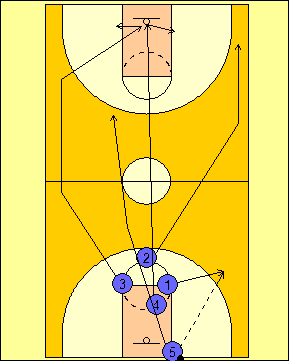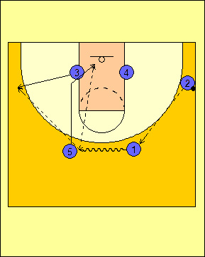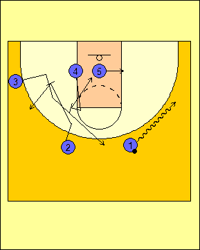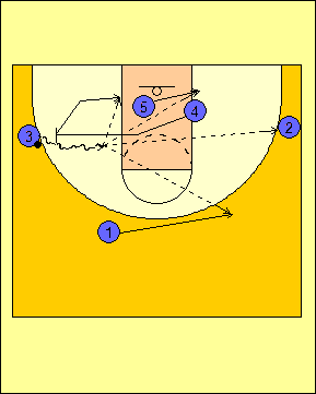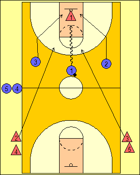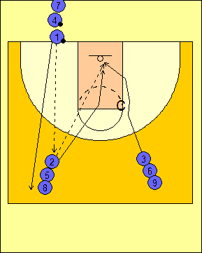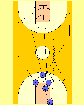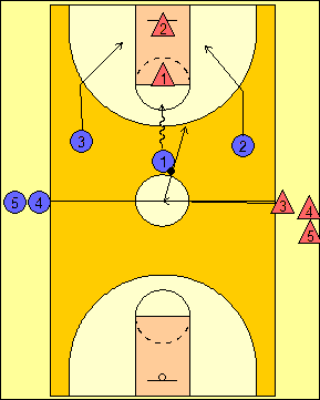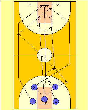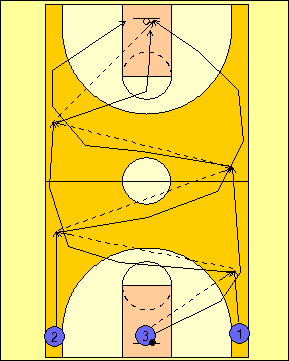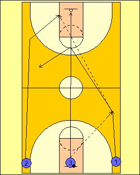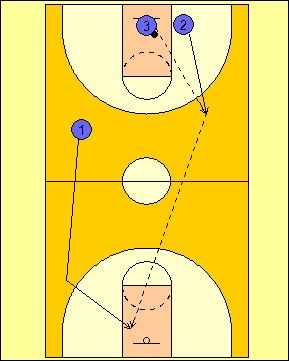 inbounding the ball to #1. #2 and #3 run the outside lanes and #1 will