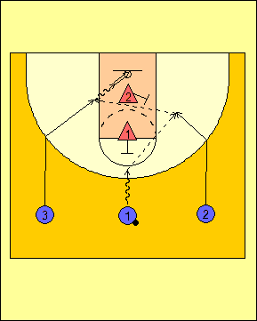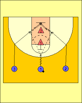 If the defender retreats, we want the point guard to attack the basket (Diagram