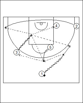 Quick hitter. #1 dribbles to either wing and the wing