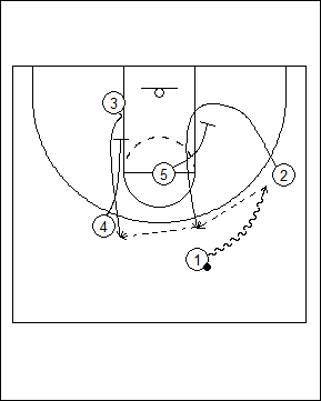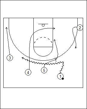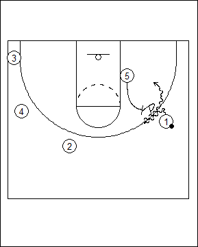 the post-up, hit #1 coming off of #5's back screen, or hit
