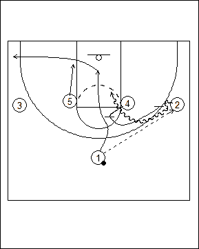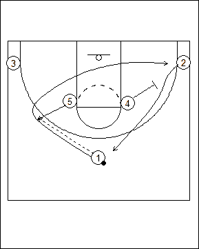 From a Horns set, #1 passes to #5 and looks to get the ball