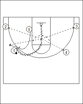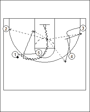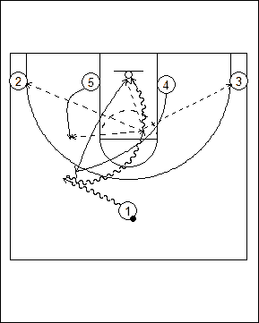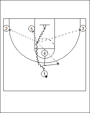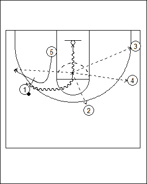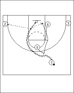 pick-and-roll from a 1-4 low set. Here, #1 will start in a