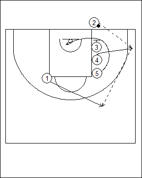 passes to #3 on the opposite slot. #'s 4 and 5 set a