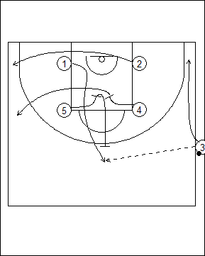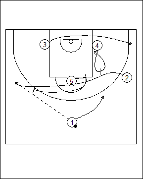 #4 trailing opposite #1. #5 sets a rear ball screen