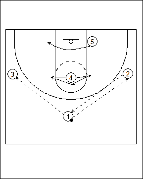 ball back to #1, he cuts to the opposite corner. |