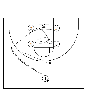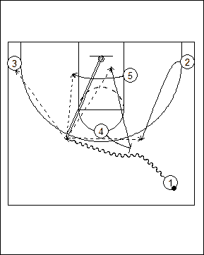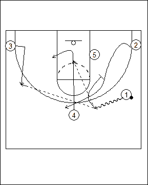 ball screen play. Here, #4 sets a ball screen for #1 then