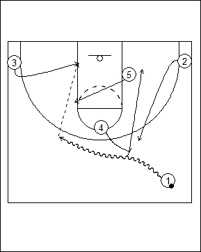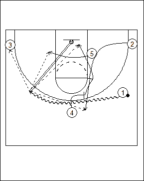 with a backdoor cut by #3. The middle pick-and-roll is set