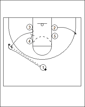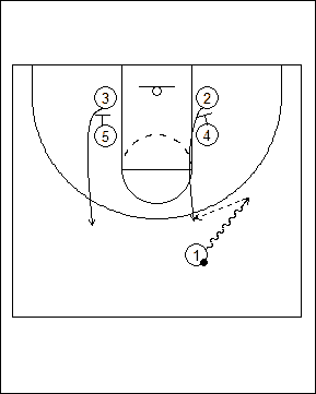 Pre-set into a side pick-and-roll. #1 passes to #3 and gets