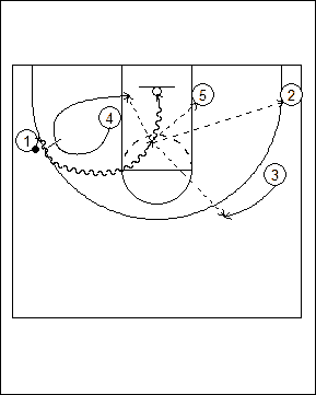 flare screen set by #4 while #1 looks to enter the ball to