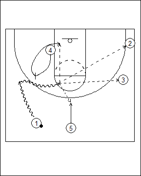 who cuts to the corner. #4 sets a screen for #5.