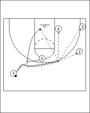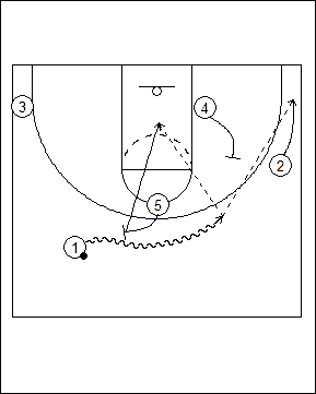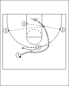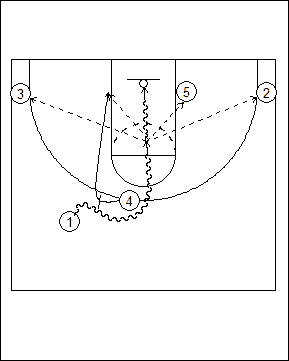 Pick-and-roll with a flare screen for #2 set by #4. |
