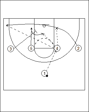 Set play from a 1-4 high. The ball is entered to #4 with a
