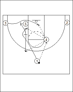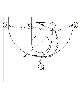 From a 1-4 low, #4 sets up the pick-and-pop with #1. |