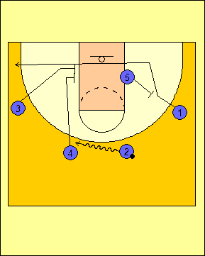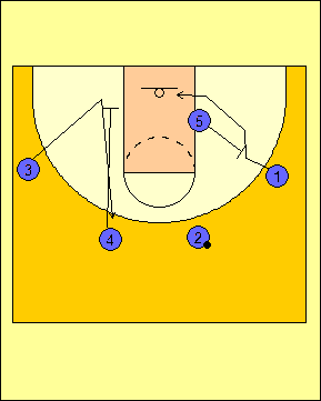 a ball screen for #2. #3 spots up and #5 rolls to the opposite block while