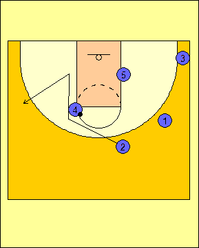 ball, he will set up a post entry with #4 by dribbling to the wing looking to